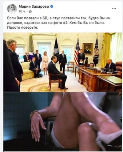 Η εκπρόσωπος του ρωσικού υπουργείου Εξωτερικών τοποθέτησε κάτω από τη φωτογραφία αυτή ένα πλάνο από την ταινία «Basic Instinct» που «έδειχνε τα πόδια». Η Ζαχάροβα έκανε κριτική για τη θέση του προέδρου της Σερβίας στη φωτογραφία και τον παρότρυνε να καθίσει όπως στη δεύτερη φωτογραφία.