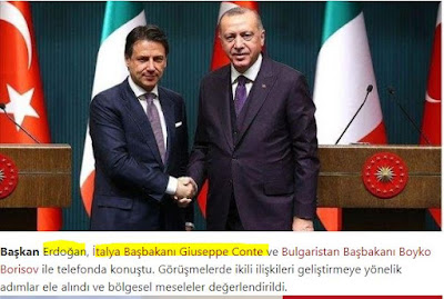 Σύμφωνα με το ιταλικό πρακτορείο «Nova», ο Κόντε είχε τηλεφωνική συνομιλία με τον Τούρκο Πρόεδρο Ρετζέπ Ταγίπ Ερντογάν, και σε αντίθεση με τις επίσημες δηλώσεις που εξέδωσε η Άγκυρα και το ιταλικό Παλάτσο Kizi, έδρα της κυβέρνησης, οι δύο χώρες μοιράζονται το ευαίσθητο έδαφος της Μεσογείου και τη γεωγραφική διάσταση του, που καθιστά απαραίτητες τις διμερείς επαφές.