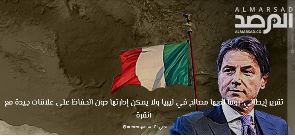 Αλλά, και η Ρώμη έχει συμφέροντα στα δύο θέματα, στη Λιβύη, η οποία θεωρείται γειτονική χώρα και δεν μπορεί να αντιμετωπιστεί σε αυτό το στάδιο χωρίς να διατηρήσει καλές σχέσεις με την Άγκυρα, ενώ η Ανατολική Μεσόγειος είναι ένα κρίσιμο σημείο στο οποίο οι ιταλικές εταιρείες όπως η Eni έχουν περισσότερες από μία ριζωμένες παρουσίες και ως εκ τούτου πρέπει να προστατευθούν.