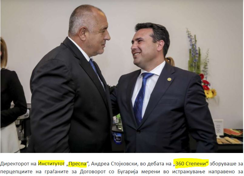 Σύμφωνα με τις δηλώσεις του διευθυντή του Ινστιτούτου, Ανδρέα Στοϊκόφσκι, στην εκπομπή «360 μοίρες», όταν ετέθη η ερώτηση προς τους πολίτες «ποια χώρα ή Ένωση είναι ο καλύτερος φίλος της Βόρειας Μακεδονίας», η Βουλγαρία κατατάχθηκε σε πολύ χαμηλή θέση.