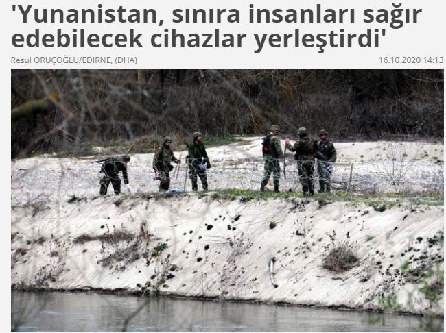 Σύμφωνα με τις αναφορές των ελληνικών μέσων ενημέρωσης- γράφει το δημοσίευμα-, αναφέρθηκε ότι το σύστημα 2 Long Range Active Acoustic Stimulant (LRAD), το οποίο παράγει βόμβες ήχου, έχει τη δύναμη να κάνει τους ανθρώπους κωφούς, έχει παραδοθεί στην ελληνική αστυνομική δύναμη στα τουρκο-ελληνικά σύνορα.