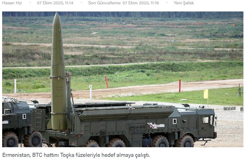 Ο πρόεδρος της Ένωσης Οικονομίας Ενέργειας ( Enerji Ekonomisi Derneği -EED) καθ. Δρ. Γκουρκάν Κουμπάρογλου, επικαλούμενος την προειδοποίηση της Γενικής Εισαγγελίας του Αζερμπαϊτζάν για πυραυλική επίθεση του αρμενικού στρατού στον αγωγό πετρελαίου Μπακού-Τιφλίδας-Σεϊχάν, που διέρχεται από την επαρχία Γεβλάχ του Αζερμπαϊτζάν, σημείωσε ότι υπήρξε, ήδη, ένα περιστατικό.