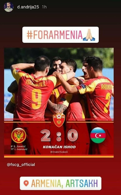 Μετά τη νίκη της ποδοσφαιρικής ομάδας του Μαυροβουνίου επί της ομάδας του Αζερμπαϊτζάν με σκορ 2-0, ο Μαυροβούνιος τερματοφύλακας, Αντρίγια Ντραγκόγεβιτς, ο οποίος παίζει με την αρμενική ποδοσφαιρική ομάδα «Alashkert», δημοσίευσε μια