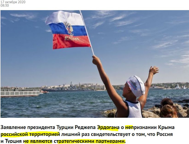 Η δήλωση του Τούρκου Προέδρου Ρετζέπ Ερντογάν σχετικά με την παράνομη προσάρτηση της Κριμαίας και τη μη αναγνώριση της, ως ρωσικού εδάφους, μαρτυρεί και πάλι το γεγονός ότι η Ρωσία και η Τουρκία δεν είναι στρατηγικοί εταίροι, γράφει ρωσικό δημοσίευμα.
