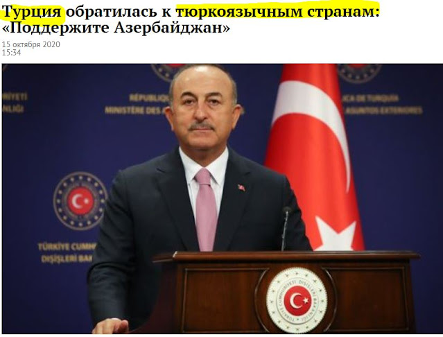 Η Τουρκία καλεί τις τουρκόφωνες χώρες να επιδείξουν αλληλεγγύη προς το Αζερμπαϊτζάν. Η έκκληση έγινε στις 15 Οκτωβρίου από τον Μεβλούτ Τσαβούσογλου στο Διεθνές Καζακστανικό- Τουρκικό Πανεπιστήμιο ‘Αχμέτ Γιασαβί'.