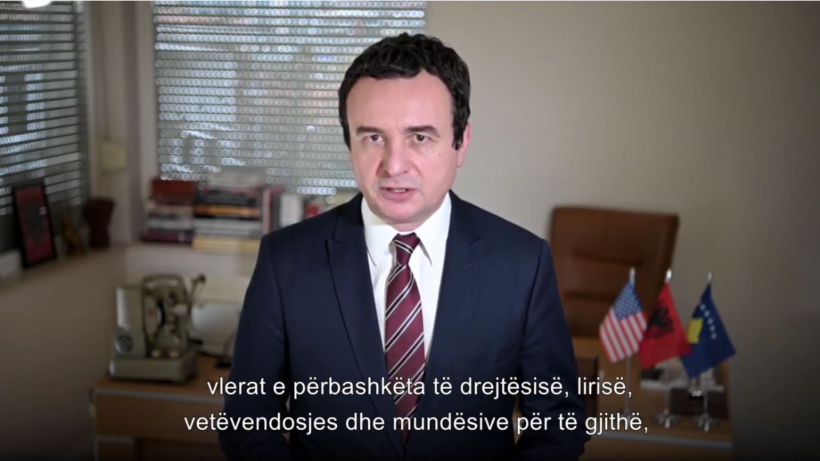Σε ένα βίντεο - μήνυμα στη σελίδα του στο Twitter, ο Κούρτι δήλωσε ότι ο Μπάιντεν παρέχει «ακλόνητη υποστήριξη» στους Αλβανούς από τη δεκαετία του 1990.
