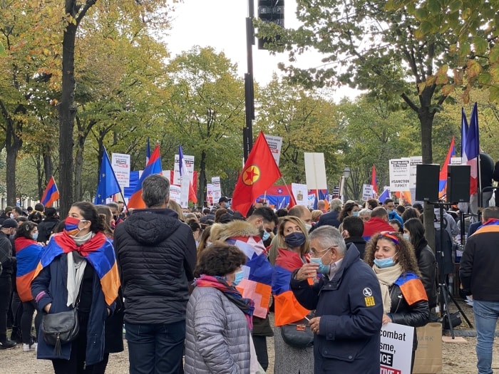Το συλλαλητήριο έγινε στην πλατεία ‘Invalides’ στην οποία συμμετείχαν και υποστηρικτές της τρομοκρατικής οργάνωσης του PKK που κρατούσαν την αρμενική σημαία και «κομμάτια υφάσματος» που ανήκαν στην οργάνωση (σημαίες δηλαδή του PKK) που προσχώρησαν στη διαμαρτυρία.