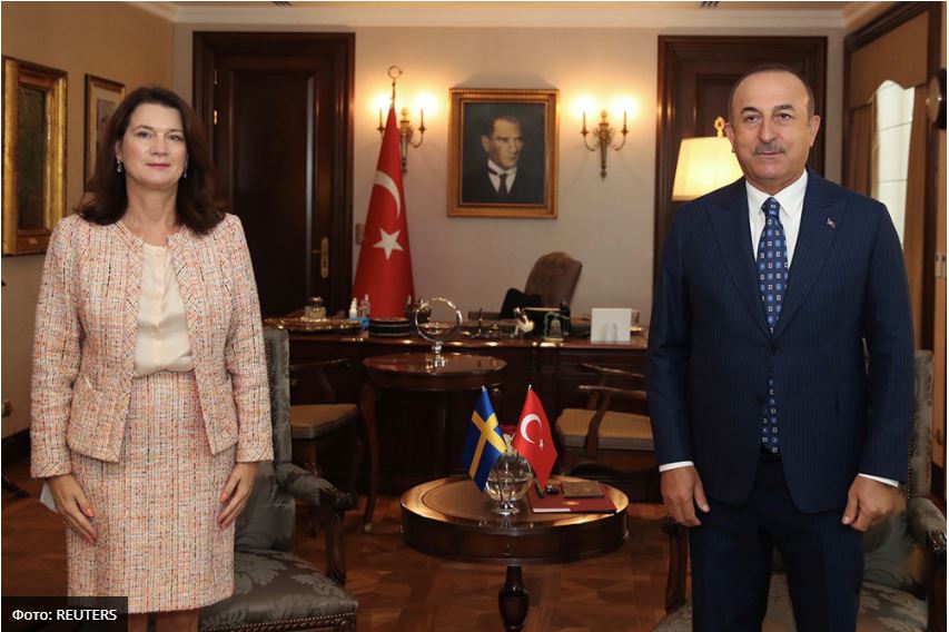 Η συνέντευξη τύπου των δύο Υπουργών πραγματοποιήθηκε στην Άγκυρα. Ο Τσαβούσογλου, ο οποίος αντέδρασε έντονα, είπε ότι η Σουηδία επιμένει ότι η Τουρκία πρέπει να αποσύρει τα στρατεύματά της από τη Συρία και επίσης ότι ( η Σουηδία) υποστηρίζει την αυτονομία των Κούρδων.