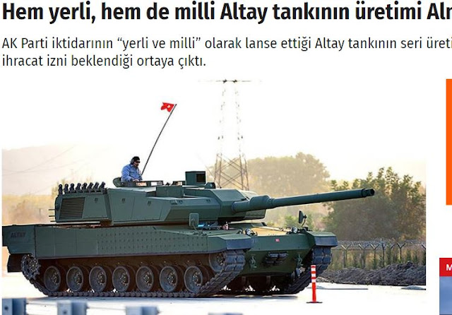 Τελικά αποδείχθηκε ότι βρισκόμαστε σε αναμονή για άδεια εξαγωγής από τη Γερμανία προκειμένου να αρχίσει η μαζική παραγωγή του άρματος μάχης Altay, για το οποίο η κυβέρνηση του AKParti το ονόμαζε ως «εγχώριο και εθνικό», γράφει τούρκικο δημοσίευμα.