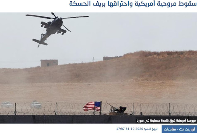 Το ειδησεογραφικό πρακτορείο «Hawar» ανέφερε ότι το αμερικανικό ελικόπτερο αναγνώρισης κατέπεσε στην περιοχή Ταλ Ταμ της επαρχίας Χασάκα, λόγω τεχνικού ελαττώματος.