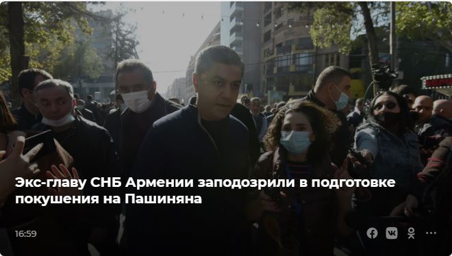 Σύμφωνα με την Υπηρεσία Ασφαλείας, ο άνδρας κατέληξε σε συμφωνία με πολιτικούς της αντιπολίτευσης στην Αρμενία και το Ναγκόρνο Καραμπάχ και τους υποστηρικτές του «για την κατάληψη της εξουσίας με τη χρήση των παράνομων αποθηκευμένων όπλων, ώστε να τερματίσουν τις δραστηριότητες του πρωθυπουργού με τη δολοφονία του και τον σφετερισμό της εξουσίας».