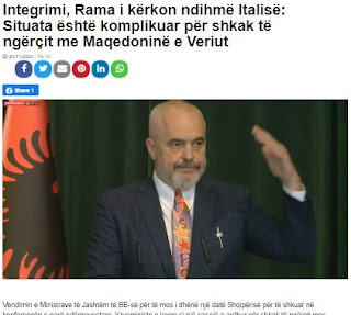 Στη δήλωση για τα μέσα ενημέρωσης μετά τη συνάντηση, σήμερα, με τον Ιταλό υπουργό Εξωτερικών, ο Αλβανός Πρωθυπουργός, για άλλη μια φορά, επεδίωξε να βρει άλλους ενόχους παρά το γεγονός ότι οι Βρυξέλλες ζήτησαν από την Αλβανία να κάνει το Σύνταγμα λειτουργικό, να ρυθμίσει τον νόμο για τα μέσα ενημέρωσης και να περιμένει την εφαρμογή του Εκλογικού Κώδικα πριν από την διακυβερνητική σύσκεψη.