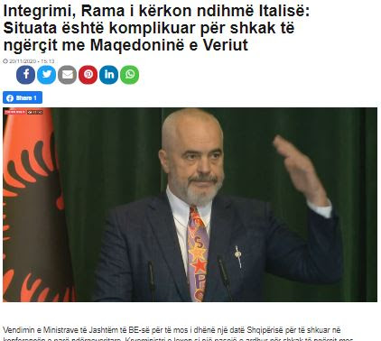 Η απόφαση των Υπουργών Εξωτερικών της ΕΕ να μην δώσει στην Αλβανία ημερομηνία για να πάει στην πρώτη διακυβερνητική διάσκεψη, αναφέρει ο πρωθυπουργός, φέρεται ως συνέπεια του αδιέξοδο μεταξύ της Βόρειας Μακεδονίας και της Βουλγαρίας, γράφει αλβανικό δημοσίευμα.