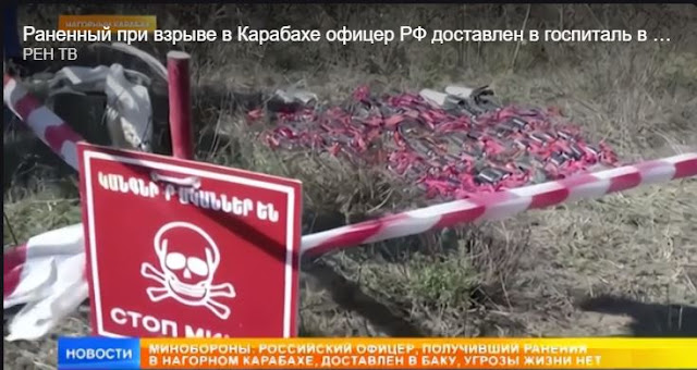 Σε έκρηξη νάρκης τραυματίσθηκαν πέντε άτομα, ένας Ρώσος αξιωματικός που βρίσκεται σε σοβαρή κατάσταση, καθώς και τέσσερις υπάλληλοι του Υπουργείου Επείγουσας Κατάστασης τη μη αναγνωρισμένης Δημοκρατίας του Αρτσάχ, ενώ ένας αξιωματικός του στρατού του Αζερμπαϊτζάν σκοτώθηκε καθώς πάτησε τη νάρκη.