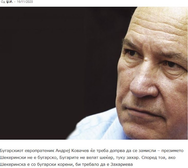 «Ο Βούλγαρος ευρωβουλευτής Αντρέι Κοβάτσεφ θα πρέπει να σκεφθεί - το επώνυμο Σεκερίνσκι δεν είναι Βουλγάρικο, οι Βούλγαροι δεν λένε Σέκιερ, αλλά Ζάχαρ. Επομένως, εάν η Sekerinska έχει βουλγαρικές ρίζες, θα έπρεπε να λέγεται Ζαχαρίεβα»