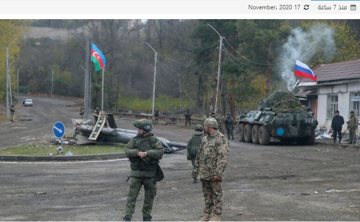 Στις 10 Νοεμβρίου, οι ηγέτες της Ρωσίας, του Αζερμπαϊτζάν και της Αρμενίας, Βλαντίμιρ Πούτιν, του Ιλχάμ Αλίγιεφ και του Νικόλ Πασινιάν, υπέγραψαν κοινή δήλωση (συμφωνία) που προβλέπει την πλήρη παύση των εχθροπραξιών στην περιοχή του Καραμπάχ.