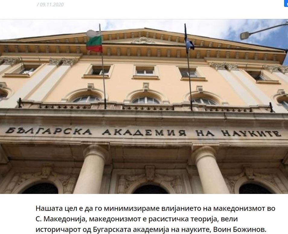 «Στόχος μας είναι να ελαχιστοποιήσουμε τον επιρροή του ‘Μακεδονισμού’ στη Βόρεια Μακεδονία, ο μακεδονισμός είναι ρατσιστική θεωρία», λέει ο ιστορικός της Βουλγαρικής Ακαδημίας, Βόιν Μπούζινοφ.