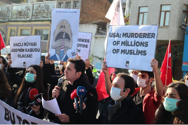 Διαδήλωση της «Ένωσης Τουρκικής Νεολαίας» εναντίον της επίσκεψης του υπουργού Εξωτερικών των ΗΠΑ, Μάικ Πομπέο, στο Φανάρι (εφημερίδα Aydinlik)