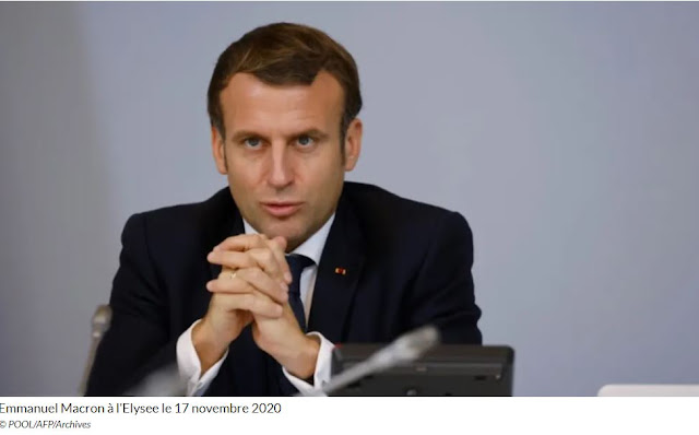 «Δεν πρέπει να είμαστε αφελείς: πολλοί από εκείνους που δίνουν φωνή, που τραβούν βίντεο, που είναι παρόντες στα γαλλόφωνα μέσα ενημέρωσης, ορίζονται από τη Ρωσία ή την Τουρκία», είπε ο Γάλλος πρόεδρος.