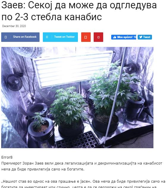 Ο πρωθυπουργός Ζόραν Ζάεφ ανέφερε ότι η νομιμοποίηση και αποποινικοποίηση της κάνναβης δεν θα είναι προνόμιο μόνο για τους πλούσιους.