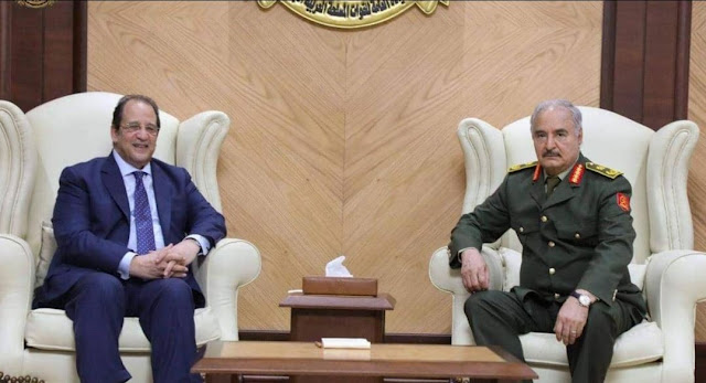 Ο επικεφαλής των Αραβικών Ενόπλων Δυνάμεων της Λιβύης, στρατηγός Χαλίφα Χαφτάρ, δέχθηκε το Σάββατο, τον στρατηγό Αμπάς Κάμελ, επικεφαλής των Αιγυπτιακών Στρατηγικών Πληροφοριών, στο γραφείο του στα κεντρικά γραφεία της Γενικής Διοίκησης στη Βεγγάζη.