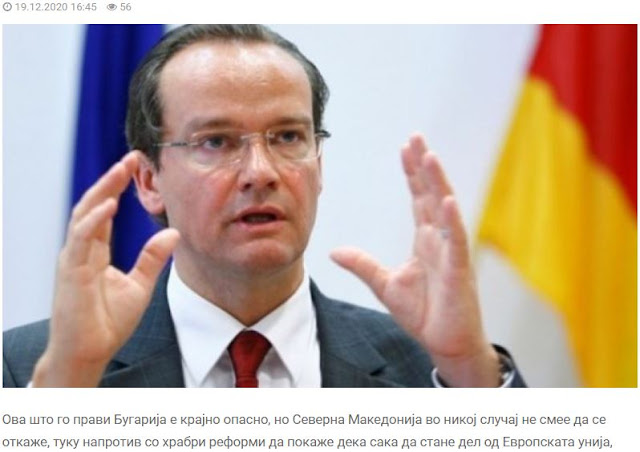 «Αυτό που κάνει η Βουλγαρία είναι εξαιρετικά επικίνδυνο, αλλά η Βόρεια Μακεδονία δεν πρέπει σε καμία περίπτωση να τα παρατήσει, αλλά αντίθετα δείχνει με τις θαρραλέες μεταρρυθμίσεις ότι θέλει να γίνει μέλος της Ευρωπαϊκής Ένωσης».