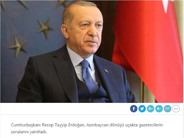 Οι δηλώσεις του έγιναν σε απάντηση ερωτήσεων των δημοσιογράφων κατά την επιστροφή του με το αεροπλάνο από το Αζερμπαϊτζάν όπως σημειώνει το τούρκικο δημοσίευμα.