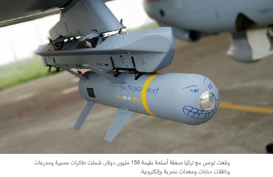 Η Τυνησία υπέγραψε συμφωνία αγοράς προϊόντων αμυντικής βιομηχανίας αξίας 150 εκατομμυρίων δολαρίων με την Τουρκία.