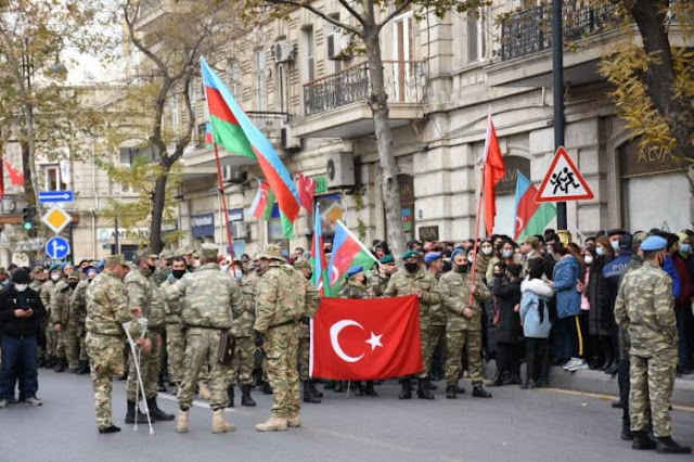 Σημειώνεται ότι κατά την παρέλαση στην πρωτεύουσα του Αζερμπαϊτζάν, ο πρόεδρος της Τουρκίας, που παρευρίσκονταν, δήλωσε ότι «πρέπει να αλλάξει η ηγεσία στην Αρμενία (!)» και ότι μετά το τέλος του πολέμου αυτού «οι μάχες δεν σταματούν αλλά συνεχίζονται σε άλλους τομείς».