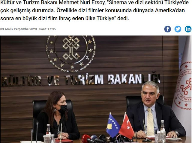 Οι δηλώσεις έγιναν, σύμφωνα με την τουρκική εφημερίδα Ντουβάρ, κατά την τελετή υπογραφής με το υπουργείο Πολιτισμού Νεότητας και Αθλητισμού του Κοσσυφοπεδίου για συνεργασία στον τομέα του θεάματος.