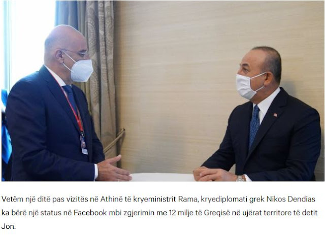Μόλις μία ημέρα μετά την επίσκεψη του Πρωθυπουργού Έντι Ράμα στην Αθήνα, ο επικεφαλής της ελληνικής διπλωματίας Νίκος Δένδιας δημοσίευσε μια ανάρτηση στα κοινωνικά μέσα για την επέκταση της Ελλάδας των χωρικών υδάτων στο Ιόνιο πέλαγος στα 12 μίλια, γράφει η αλβανική Sot.