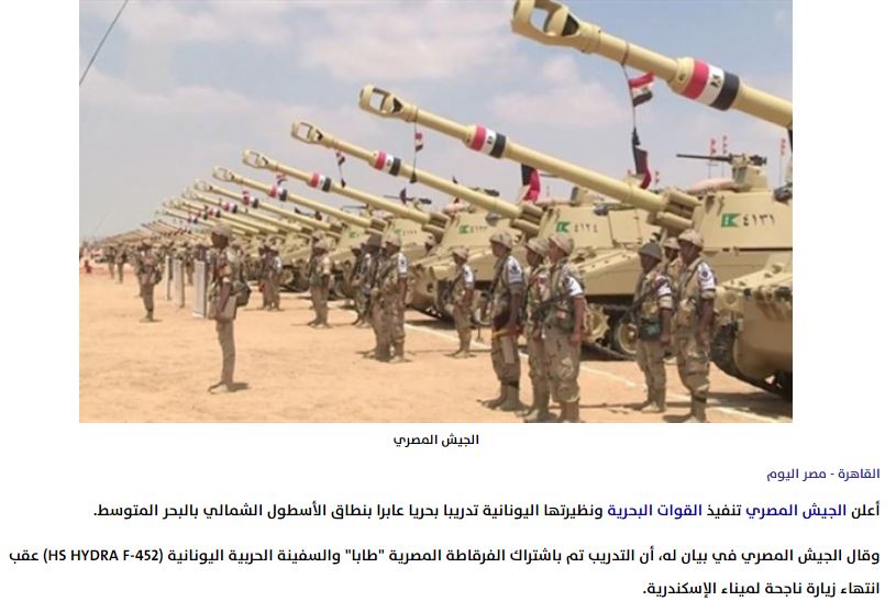 Οι αιγυπτιακές ένοπλες δυνάμεις θα πραγματοποιήσουν ασκήσεις με το Ελληνικό Πολεμικό Ναυτικό με τον βόρειο στόλο της χώρας, στη Μεσόγειο Θάλασσα.