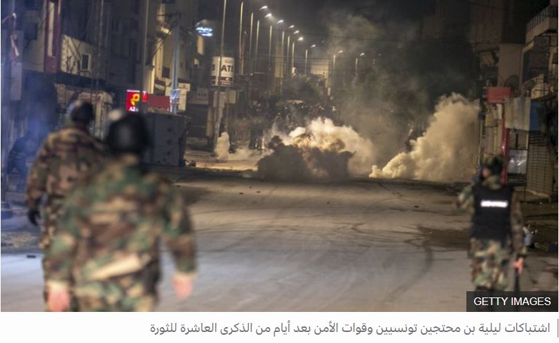 Λίγες μέρες πέρασαν από τη δέκατη επέτειο της επανάστασης της Τυνησίας και η χώρα γνώρισε νυχτερινές διαδηλώσεις, στην πρωτεύουσα Τύνιδα, και σε άλλες πόλεις, οι οποίες συνεχίστηκαν για τρεις ημέρες.