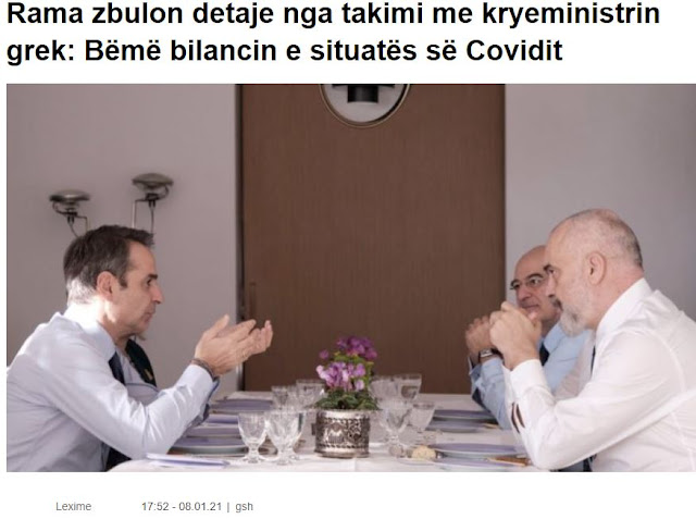 Ο Ράμα εξέφρασε τις ευχαριστίες του για την έξοχη φιλοξενία στο σπίτι του Έλληνα πρωθυπουργού Μητσοτάκη «όπου κάναμε έναν απολογισμό της κατάστασης με τον Covid, τη σχέση μεταξύ των δύο χωρών μας και των περιφερειακών θεμάτων! Πλήρης βούληση για την περαιτέρω ανάπτυξη αυτής της στρατηγικής σχέσης από κοινού», έγραψε χαρακτηριστικά ο πρωθυπουργός της Αλβανίας.