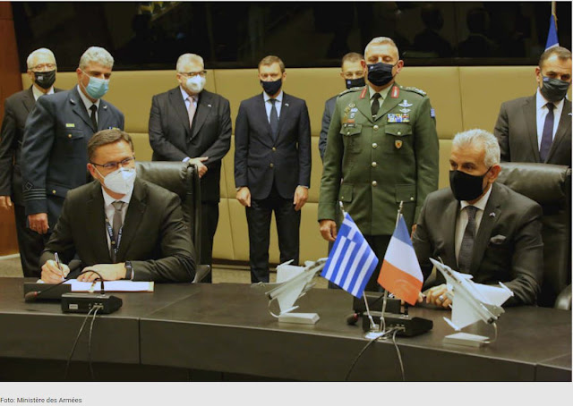 Ο υποπτέραχος (ε.α.) Θεόδωρος Λάγιος, Γενικός Διευθυντής Εξοπλισμών στο Υπουργείο Άμυνας της Ελλάδος και ο Eric Béranger, Διευθύνων Σύμβουλος της εταιρείας πυραυλικών συστημάτων MBDA με έδρα στη Λε Πλεσί-Ρομπενσόν - Γαλλία, υπέγραψε σήμερα (χθες) σύμβαση προμήθειας των εξοπλισμών των 18 μαχητικών αεροσκαφών Rafale που προορίζονται για την Ελληνική Πολεμική Αεροπορία, όπως αναφέρει ιταλικός ιστότοπος που ασχολείται με την Άμυνα.