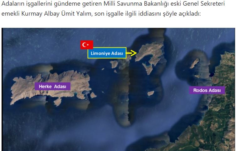 «Παραβλέποντας το διεθνές δίκαιο (…) στο Αιγαίο και τη Μεσόγειο, η Ελλάδα ξεκίνησε άλλη μία κατοχή ενός νησιού», λέει τούρκικο δημοσίευμα με αφορμή τις εκκλησίες στο ελληνικό νησί Αλιμιά που βρίσκεται μεταξύ της Ρόδου και της Χάλκης, που οι Τούρκοι σε αυτό καθώς και σε πολλά άλλα νησιά και βραχονησίδες έχουν κατακτητικές βλέψεις.