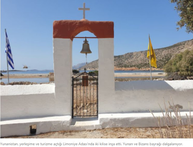«Στο νησί Limoniye (Αλιμιά) της Ελλάδας, το οποίο άνοιξε για διαμονή και τουρισμό χτίστηκαν δύο εκκλησίες. Στο νησί κυματίζουν ελληνικές και βυζαντινές σημαίες.»