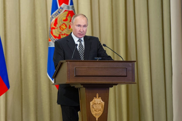 Σε συνάντηση με ανώτερους αξιωματούχους της FSB, ο Πούτιν τόνισε «τη λεγόμενη πολιτική αποτροπής της Ρωσίας», αναφέροντας ότι περιλάμβανε προσπάθειες για «αποτυχία της ανάπτυξής μας, επιβράδυνση, δημιουργία προβλημάτων κατά μήκος των συνόρων μας προκαλώντας εσωτερική αστάθεια και υπονόμευση των αξιών που ενώνουν τη ρωσική κοινωνία».