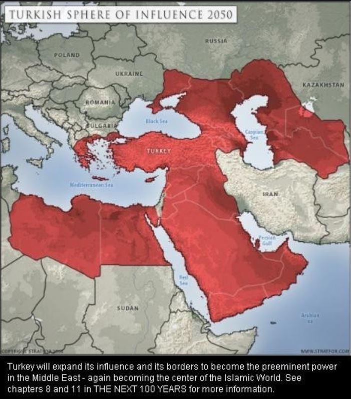 Μία από αυτές τις προβλέψεις είναι αφιερωμένη στη μελλοντική πολιτική επέκταση της Τουρκίας, υπό την επιρροή της οποίας (σύμφωνα με τον Fridman) θα πέσει όχι μόνο οι χώρες του Νότιου Καυκάσου και της Κεντρικής Ασίας, αλλά και τα εδάφη της Ρωσικής Ομοσπονδίας: Κριμαία, Βόρεια Εδάφη Καύκασου, Κρασνοντάρ και Σταυρούπολη καθώς και η περιοχή του Βόλγα.