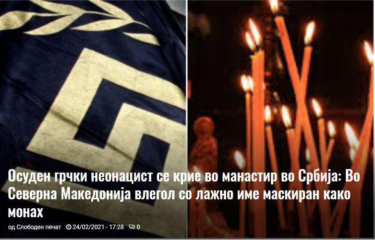 Οι ελληνικές αρχές ερευνούν αναφορές ότι ο πρώην ακροδεξιός βουλευτής Χρήστος Παπάς, 59 ετών, ο οποίος είναι καταζητούμενος μετά την καταδίκη του για συμμετοχή στη νεοναζιστική οργάνωση της Χρυσής Αυγής, κατέφυγε σε μοναστήρι στη Σερβία, γράφει η εφημερίδα των Σκοπίων, Σλόμποντεν Πέτσατ.