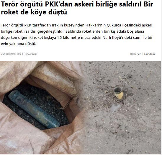 «Η τρομοκρατική οργάνωση του PKK από το βόρειο Ιράκ πραγματοποίησε πυραυλική επίθεση εναντίον μονάδας του τουρκικού στρατού στην περιοχή Τσουκούρτζα του Χακάρι», γράφει τούρκικο δημοσίευμα.