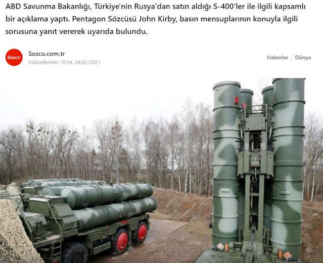 Συνεχίζεται η ένταση μεταξύ των ΗΠΑ και της Τουρκίας για τους S-400, μια νέα δήλωση έγινε από το υπουργείο Άμυνας των ΗΠΑ (Πεντάγωνο), γράφει τούρκικο δημοσίευμα.