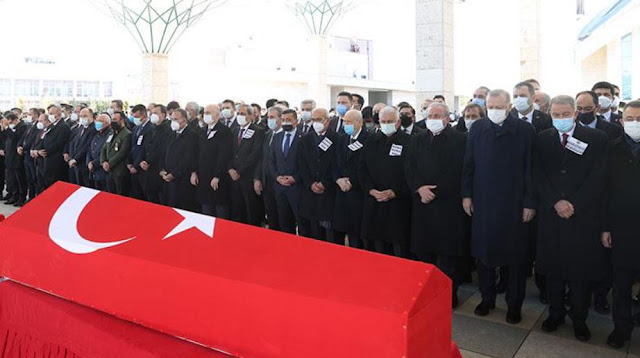 Επίσημη τελετή πραγματοποιήθηκε στην Άγκυρα για τους νεκρούς της πτώσης του στρατιωτικού ελικοπτέρου με την παρουσία της πολιτικής και της στρατιωτικής ηγεσίας της χώρας. Φωτό από την τουρκική «Posta»
