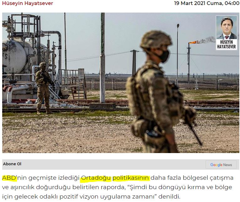 Η «RAND Corporation» ομάδα προβληματισμού (δεξαμενή πολιτικής σκέψης) στις ΗΠΑ, δημοσίευσε έκθεση που προτείνει μια νέα στρατηγική για τις ΗΠΑ κατά την εποχή του Μπάιντεν, στην οποία υπογραμμίζονται οι οικονομικές επενδύσεις και η διπλωματία στη Μέση Ανατολή, παρά τη στρατιωτική δύναμη, σημειώνει η τουρκική εφημερίδα Τζουμχουριέτ.