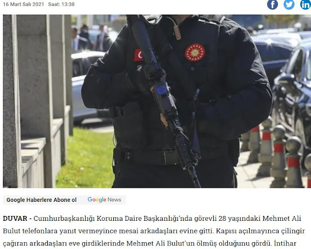Ο Μεχμέτ Αλί Μπουλούτ, αστυνομικός στο Προεδρικό Τμήμα Προστασίας αυτοκτόνησε γράφοντας μια επιστολή κατηγορώντας τους προϊσταμένους του.