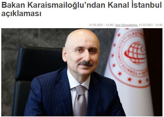 «Το κανάλι της Κωνσταντινούπολης θα είναι το πιο σημαντικό συστατικό του Μεσαίου Διαδρόμου, που είναι η εμπορική οδός που συνδέει την Ευρώπη και την Ασία», λέει ο Καραϊσμαΐλογλου στην Turkiye Gazetesi