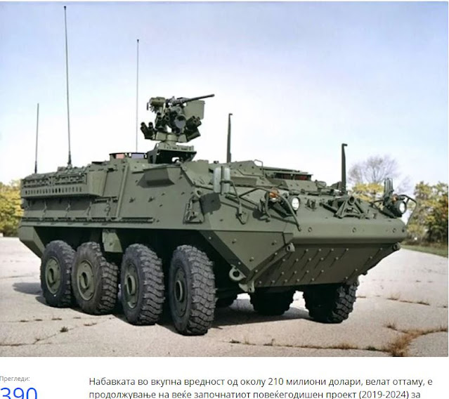Το υπουργείο Εξωτερικών των ΗΠΑ ενέκρινε την προμήθεια 54 ελαφρών θωρακισμένων οχημάτων τύπου «Stryker» από την κυβέρνηση, για τις ανάγκες που σχετίζονται με τον εκσυγχρονισμό του στρατού της Βόρειας Μακεδονίας, σύμφωνα με τα πρότυπα του ΝΑΤΟ.