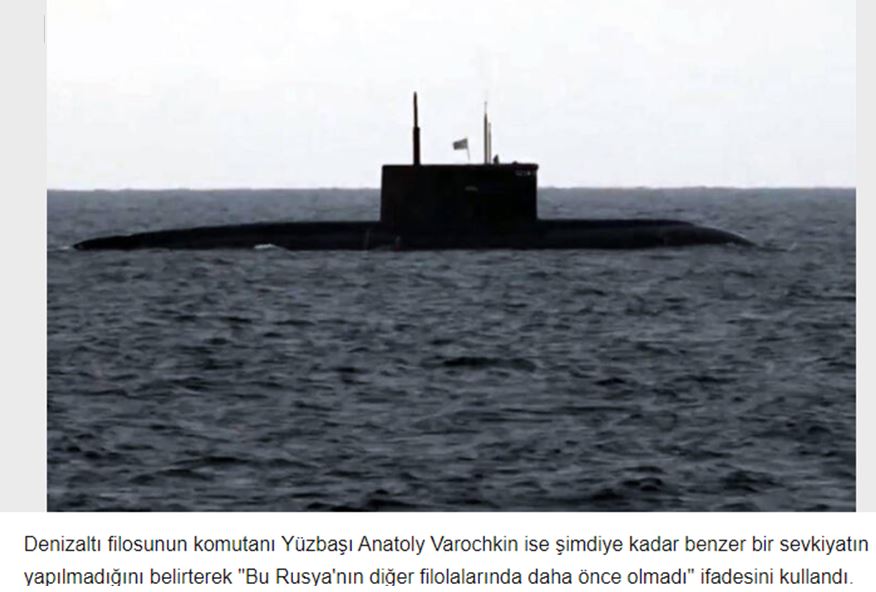 Ο διοικητής του στόλου, Αντιναύαρχος Ιγκόρ Οσίποφ «Όλα τα υποβρύχια του στόλου της Μαύρης Θάλασσας έχουν εγκαταλείψει τις βάσεις τους για να εκπληρώσουν συγκεκριμένο έργο. Δεν βρίσκονται στις βάσεις υποβρυχίων», είπε.