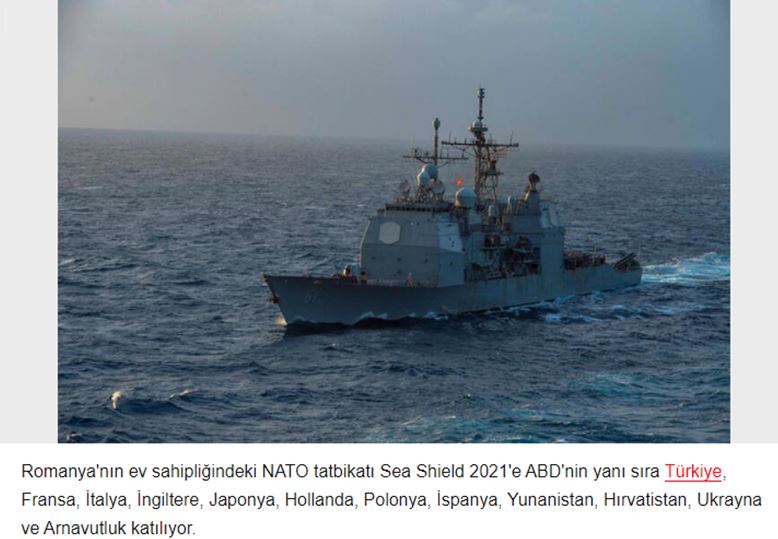 Στην άσκηση του ΝΑΤΟ «Θαλάσσια Ασπίδα 2021»/ «Sea Shield 21», που φιλοξενείται από τη Ρουμανία συμμετέχουν οι Ηνωμένες Πολιτείες, η Τουρκία, η Γαλλία, η Ιταλία, η Αγγλία, η Ιαπωνία, οι Κάτω Χώρες, η Πολωνία, η Ισπανία, η Ελλάδα, η Κροατία, η Αλβανία και η Ουκρανία.