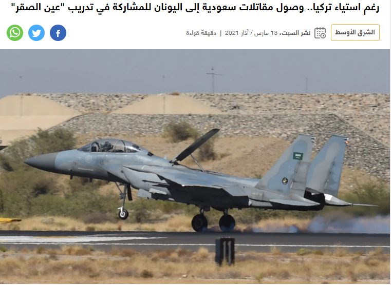 «Παρά τη δυσαρέσκεια της Τουρκίας… τα σαουδαραβικά μαχητικά έφτασαν στην Ελλάδα για να συμμετάσχουν στην άσκηση ‘Μάτι Γερακιού’»